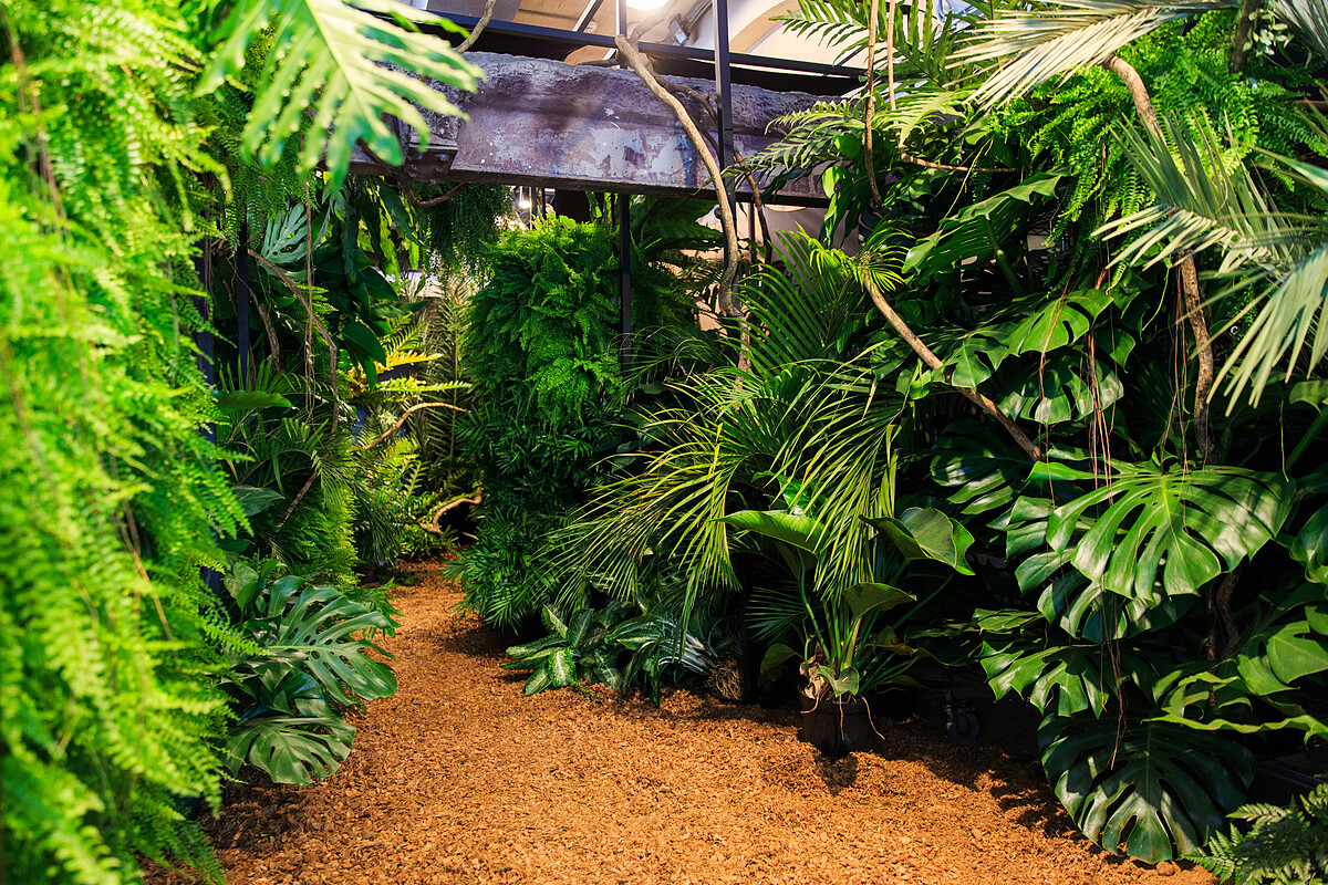 星巴克今年以「Coffee Inspires Your Life」為主題,從咖啡與人的角度出發,改造華山的老倉庫並且架起格柵,舉辦一場瀰漫咖啡香氣與旅人記事的展覽。將台灣山區海拔常見的蕨類及植物堆疊相映搬到入口處,帶出台灣在地的生命力及韌性,而今年也是星巴克融入在地生活20年。