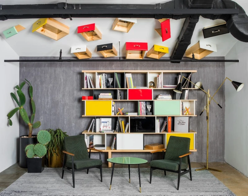 在這個奢逸壯麗的羅馬古典建築裡,Fendi 的辦公室則是玩心十足的當代風格。混擬土牆面、裸天花板裝置和繽紛簡約的傢俱飾品,讓空間營造出美好的反差,也為品牌以義大利傳統工藝走向年輕未來的大方向,做了完美的詮釋。