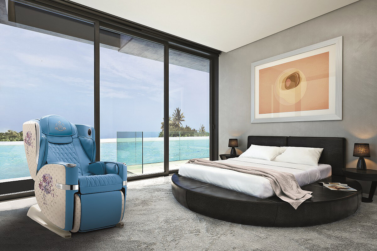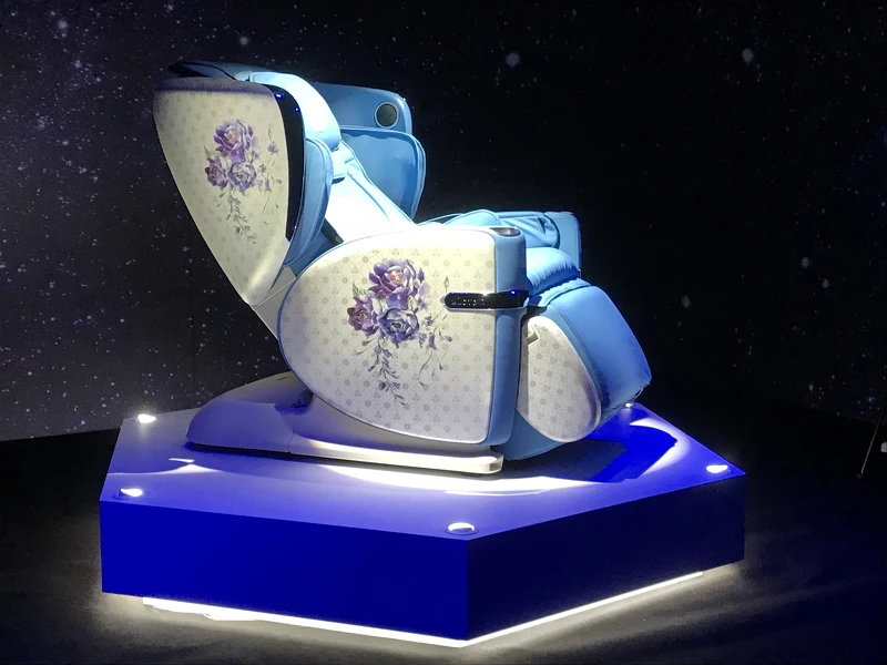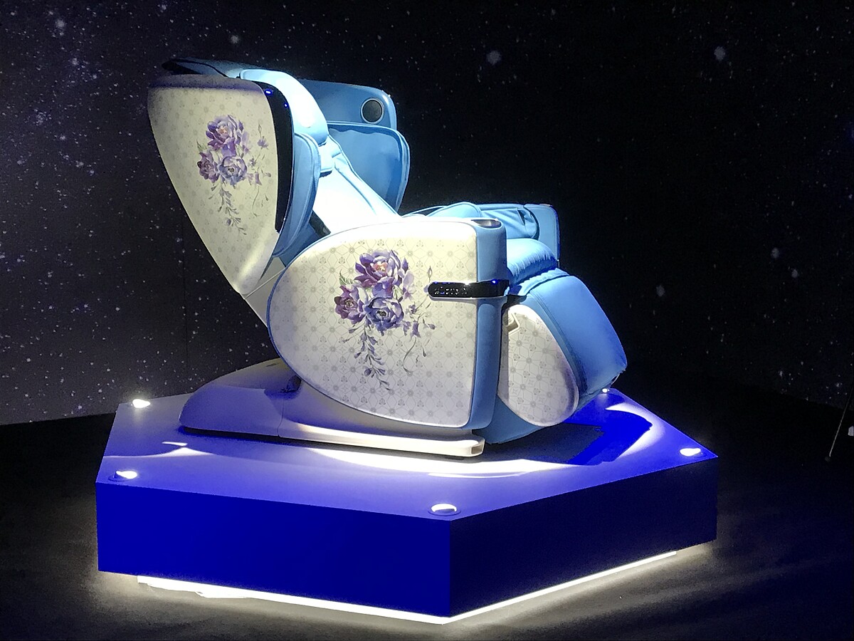 這回更特別聘請「日本整脊大師佐藤毅」研發設計,因應不同生活型態與需求,提供使用者兼具效能與專業生活型態的按摩,除了內建按摩程式外提供的高效按摩功能外,更能透過智慧手機、平板APP無限下載更多不同的按摩程式與音樂至按摩椅中,讓按摩椅價值無限延伸,不論是爸爸媽媽、爺爺奶奶或是年輕上班族工作回來的疲累,都有如尊寵等級的享受按摩體驗。而按摩椅外觀以象徵大富大貴牡丹花限量款及高貴端莊象徵鴻運當頭的「紫玉蘭」的花卉設計,打造出別於一般看起來沉重的外觀,添入花朵印花更加顯像輕柔、奢華的霸氣魅力,還推出紫色、綠色、棕色、藍色、粉紅色五款不同顏色的高級皮革座椅,藍色與粉紅色為皇家圖騰限量版,別出心裁的印花設計於頭枕與椅身上,展現按摩椅帶來的奢華與霸氣魅力。