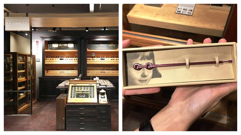 4F 好好生活選物區中,打造出老派美學空間的Classico,手工眼鏡J系列鏡框於日本眼鏡直人打造。賽璐璐版質感結合鈦金屬,除了鏡框外,神秘隱藏版還有少量以邊材製作、適合女生的耳環配件,以及適合送禮幽默的眼鏡造型掏耳棒。