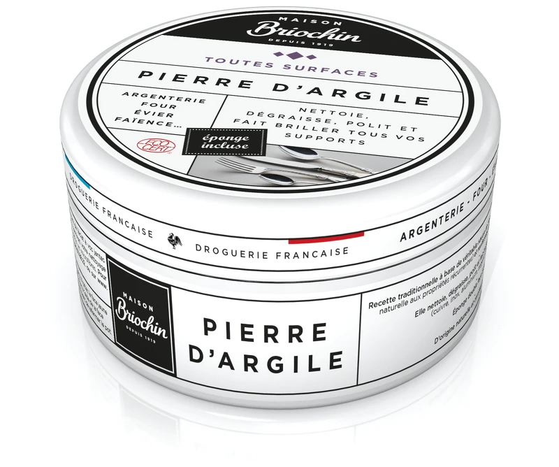 白瓶裝的清潔石,來自於馬賽的傳統肥皂配方,98.4%的天然成分中含有來自布列塔尼高嶺土、甘油及檸檬油精。可有效清潔油污,達到表面清潔以及拋光作用,如水龍頭、鏡子、淋浴間、甚至球鞋等都能使用。