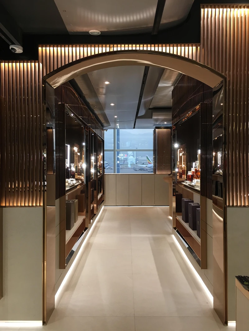 靈感源自軒尼詩家族古堡Château de Bagnolet。在香港機場的旗艦店要創造干邑的魅力世界。精心創造的沉浸式體驗空間,開放給所有的旅客。從走入酒窖拱門開始,會看到散發琥珀色澤的廊道,發現自己已然步入軒尼詩家族古堡Château de Bagnolet之中。