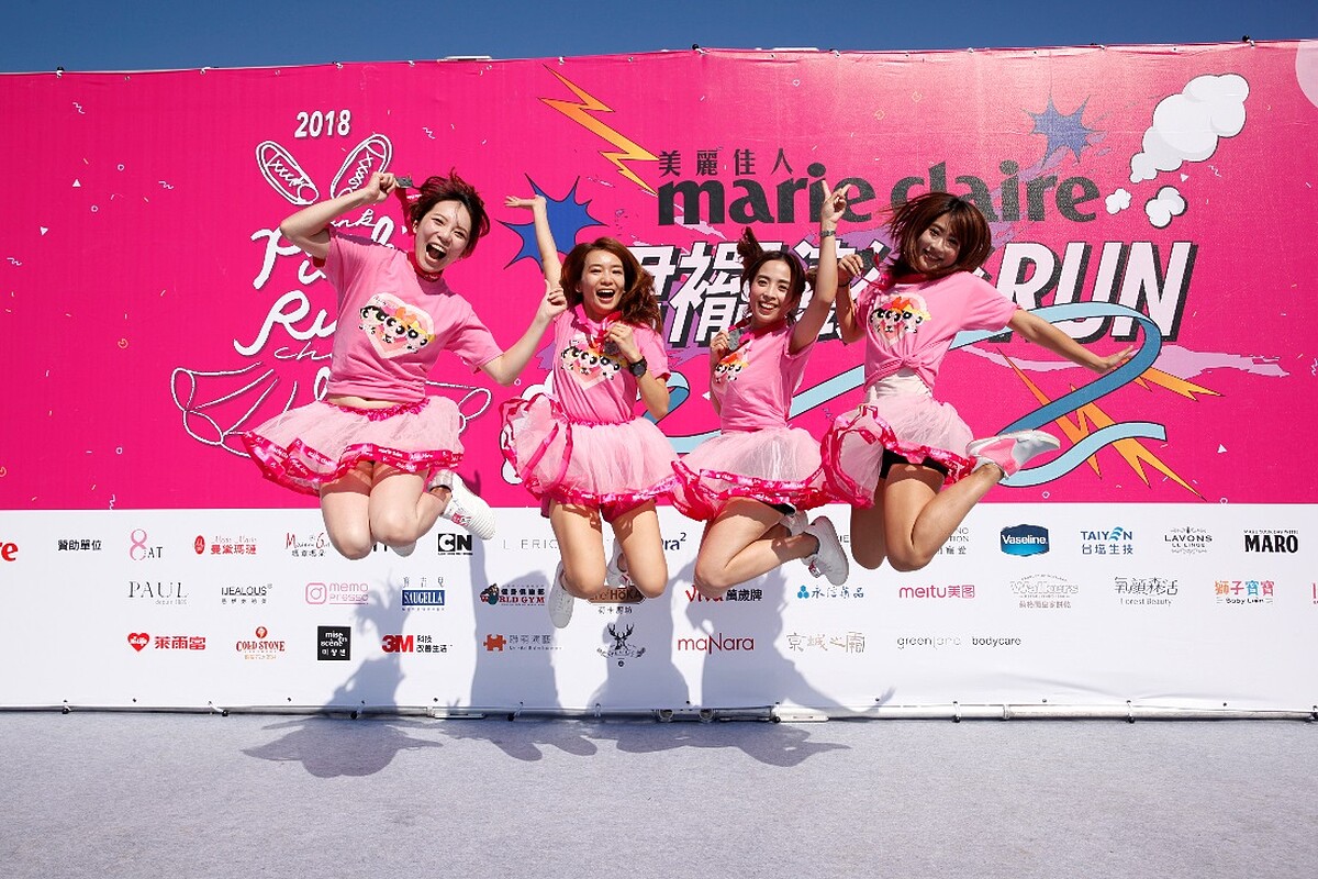 邁入第四年的PINK RUN裙襬澎澎RUN,21日早晨在大臺北都會公園幸福水漾園區舉行,週末陽光也終於露臉,給了跑友們一個陽光普照的大晴天,現場超過5,500位跑者一同穿著粉紅澎澎裙,用心打扮前來參與一年一度的路跑盛會。