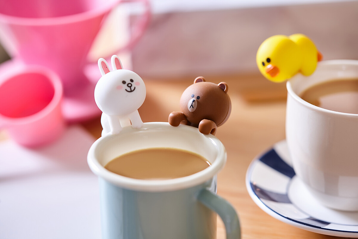 當然這次聯名可不只有包裝而已!在特別包裝的「LINE FRIENDS立頓原味奶茶杯緣公仔組」盒裝中,可是悄悄隨機放入一款熊大、兔兔與莎莉的限定杯緣子公仔啊!!!(一定要三個驚嘆號才能代表M編的激動)看著掛在杯緣爬不上去的熊大、頭太重幾乎掉到杯中的兔兔和莎莉掛在杯緣晃啊晃的小短腿,壓力是什麼我不知道~真的有夠療癒~
