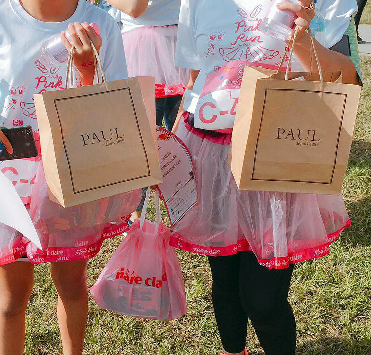 今年的跑衣加入RITE和飛天小女警獨家聯名,RITE在現場還送出飛天小女警行李箱束帶,立刻兌換一空;多年持續推行乳癌防治的雅詩蘭黛也來支持公益盛宴,不僅有King Size冠軍杯的拍照點,還利用暢銷商品Double Wear瓶身做成特調飲料送給現場跑友~前500名報名的小澎裙還能獲得PAUL準備的正能量特餐,現場還有洛克貼攤位讓跑完步的小澎裙做免費包紮服務!
