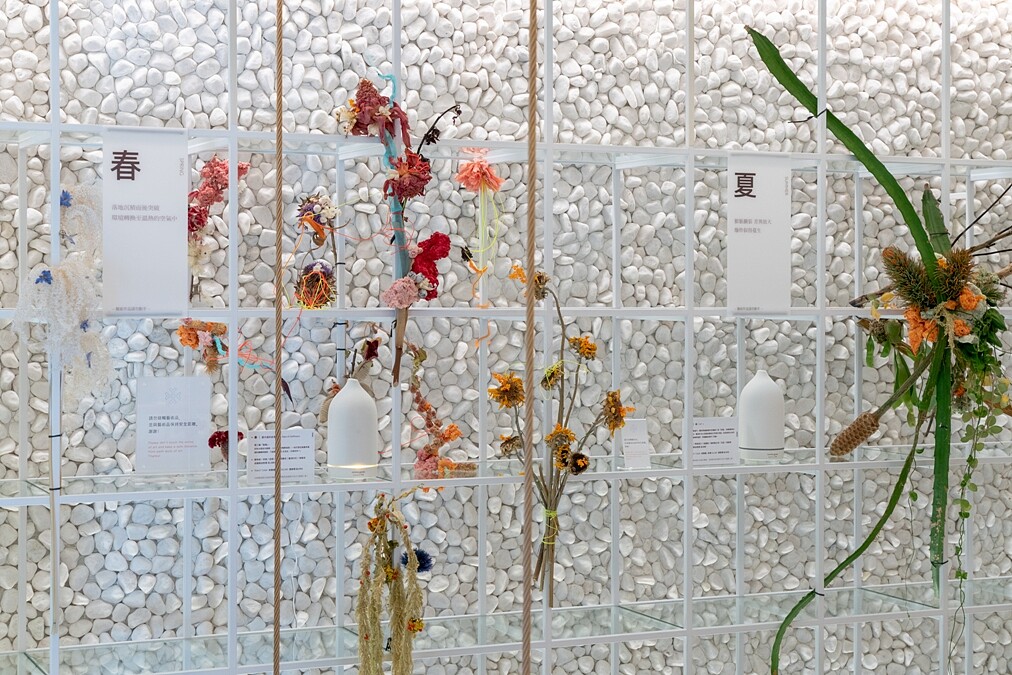 二樓由鹿森林實驗花廊以回收再使用的可能性出發,讓原本在生活空間中的植物,透過另一種詮釋方式,再次回到人們生活中。主題「Second Life岩時」,是要讓凋零後的花植有機會以另種形式,被看見,再次站上舞台。更深度的心靈感知,將不同狀態的植物生命期無限延伸,如染過色乾燥易碎的滿天星、已經開始腐敗出水的仙人掌、因掉落露出的烏桕種子等,溫柔的揉成植物化石,傳達森林循環最終沉積在土地上,生命循環最終也回歸自然。