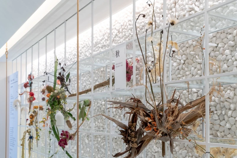 二樓由鹿森林實驗花廊以回收再使用的可能性出發,讓原本在生活空間中的植物,透過另一種詮釋方式,再次回到人們生活中。主題「Second Life岩時」,是要讓凋零後的花植有機會以另種形式,被看見,再次站上舞台。更深度的心靈感知,將不同狀態的植物生命期無限延伸,如染過色乾燥易碎的滿天星、已經開始腐敗出水的仙人掌、因掉落露出的烏桕種子等,溫柔的揉成植物化石,傳達森林循環最終沉積在土地上,生命循環最終也回歸自然。