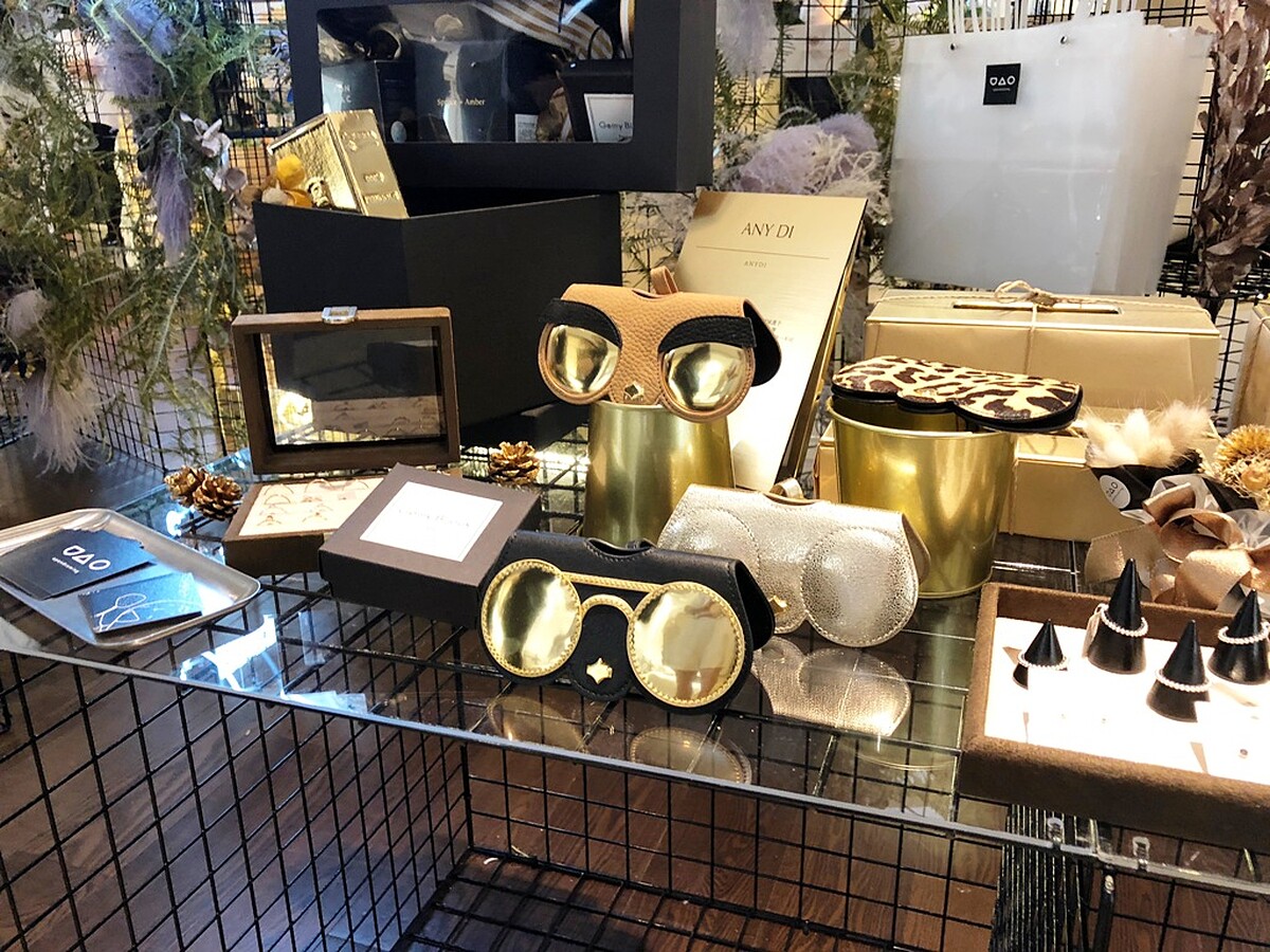 將擅長裝飾藝術與花藝設計融入現場,upandcoming花卉團隊不僅點綴了現場秋感氣氛,以大亨小傳為靈感設計黑金白風格禮盒,內容包括瑜珈、輕珠寶、香氛、牛皮眼鏡套、金箔香檳,以及黃銅手工商品等,用不同素材禮品結合美麗花植美感,更能感受年底豐收的欣喜。