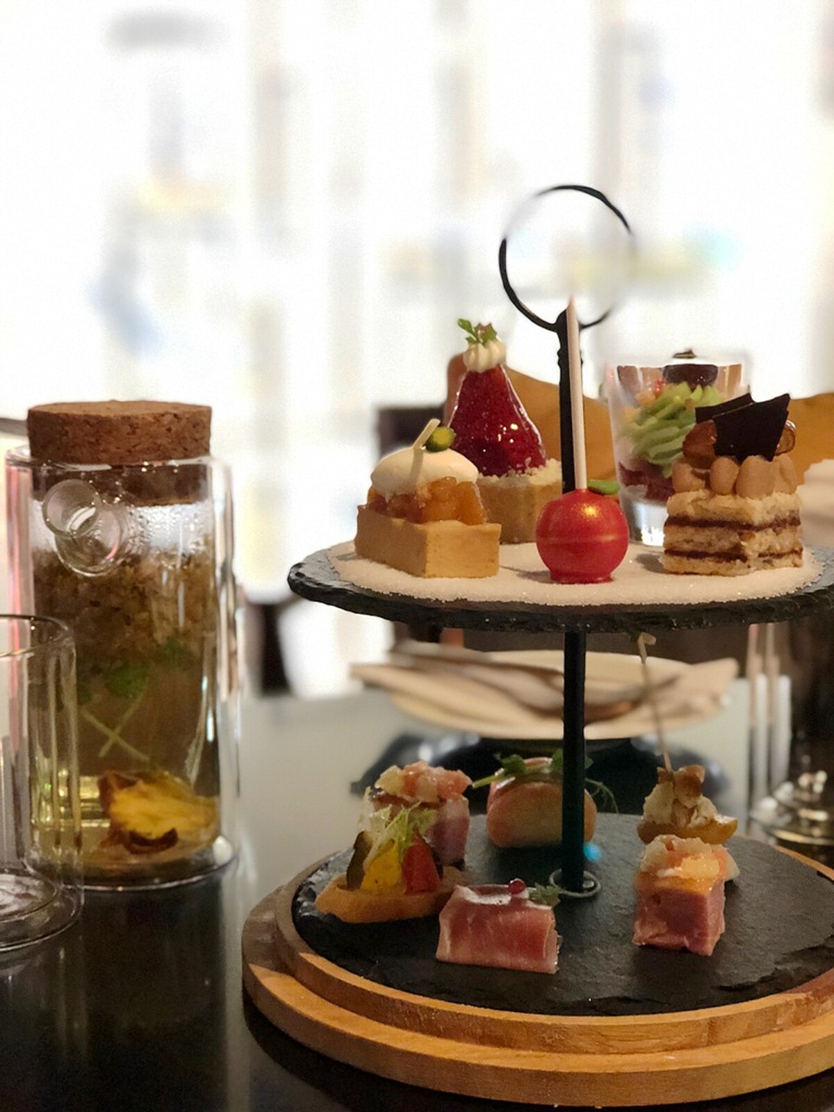 充滿節慶氛圍的《秋日‧豐收市集》旁還有祕密花園午茶區,和mini moet合作的英式午茶還提供特製金幣可以玩一次mini moet 販賣機。雙人英式午茶提供六款鹹點(杏桃起司、鴨胸漬水果、帕馬火腿西瓜、時蔬塔、煙燻鮭魚洋芋沙拉、法式鹹派),以及五款甜點(櫻桃開心果、榛果栗子蛋糕、草莓塔、焦糖蘋果塔和蘋果棒棒糖) 和兩杯咖啡以及一罐迷你香檳。雙人價格TWD1880。每天都有限量,可以先致電預約02-2521-5000轉祕密花園3089。