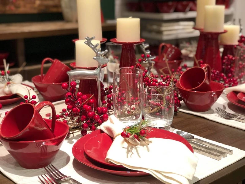 少不了的聖誕紅綠色彩。以紅莓果作為牆面與餐桌裝飾主題。延伸出經典的雪花、松樹、雪人、麋鹿…等聖誕圖樣抱枕、餐皿、吊飾或聖誕襪,增添過節氣氛。