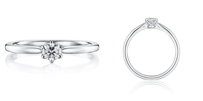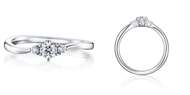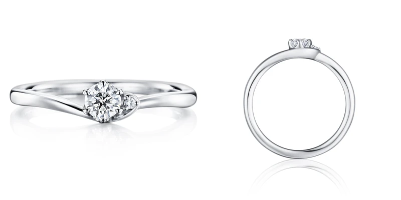 採取在主鑽旁以戒環延伸環抱碎鑽的設計,洋溢著女性柔美氣質,環抱碎鑽的戒環則以一種俐落勾勒卻又異常美麗的圓弧造型呈現。