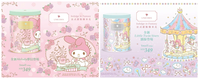 本次購買UNICORN三款不同的聯名爆米花,不僅可獲得對應的主題提袋外,還特別設計了同系列精美裁型留言卡,讓男孩女孩兒們送禮,皆能將滿滿心意寫下!讓人光是第一眼看到那粉色系的可愛精緻包裝,即使不是三麗鷗迷,也想要立刻購入。