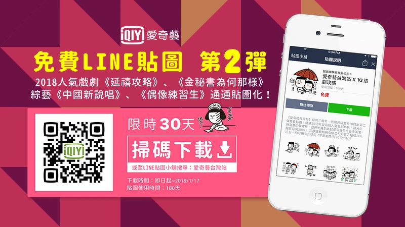 響應首屆娛樂大賞 愛奇藝台灣站推出「追劇攻略」免費貼圖!