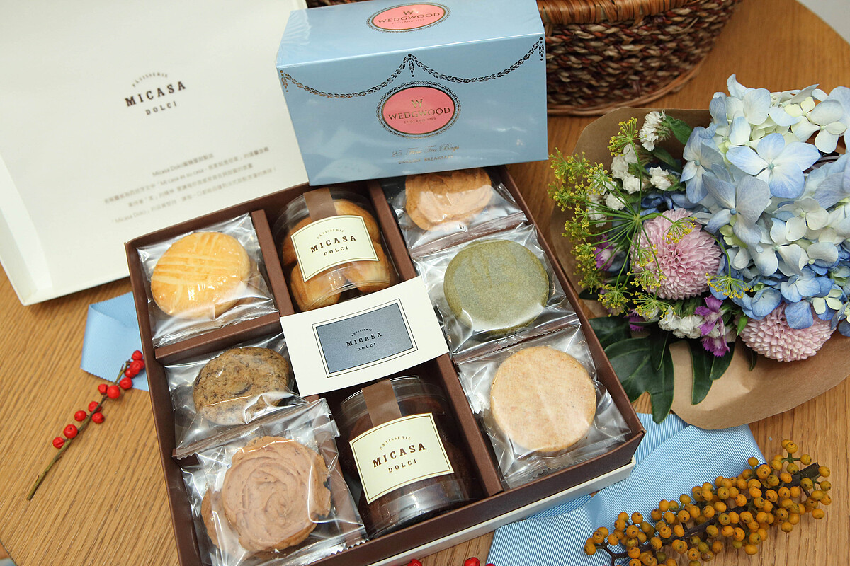 在充滿療癒系花藝風格的視覺享受之餘,承辦過種多明星名媛婚禮的頂級婚顧女王—Chin Chin集團林青蓁女士,因為受「桃園大溪威斯汀渡假飯店」執行董事黃郁婷 Jennifer Huang的盛情邀約下,共同攜手創立的「Micasa Dolci蜜膳屋甜點店」,以款款精緻手工糕點餅乾,同時講求養身健康的老饕品味,帶給大家另一種法式甜點浪漫X日式甜點特有的浪漫幸福滋味,這次也熱情投入禮盒中的甜點創作。