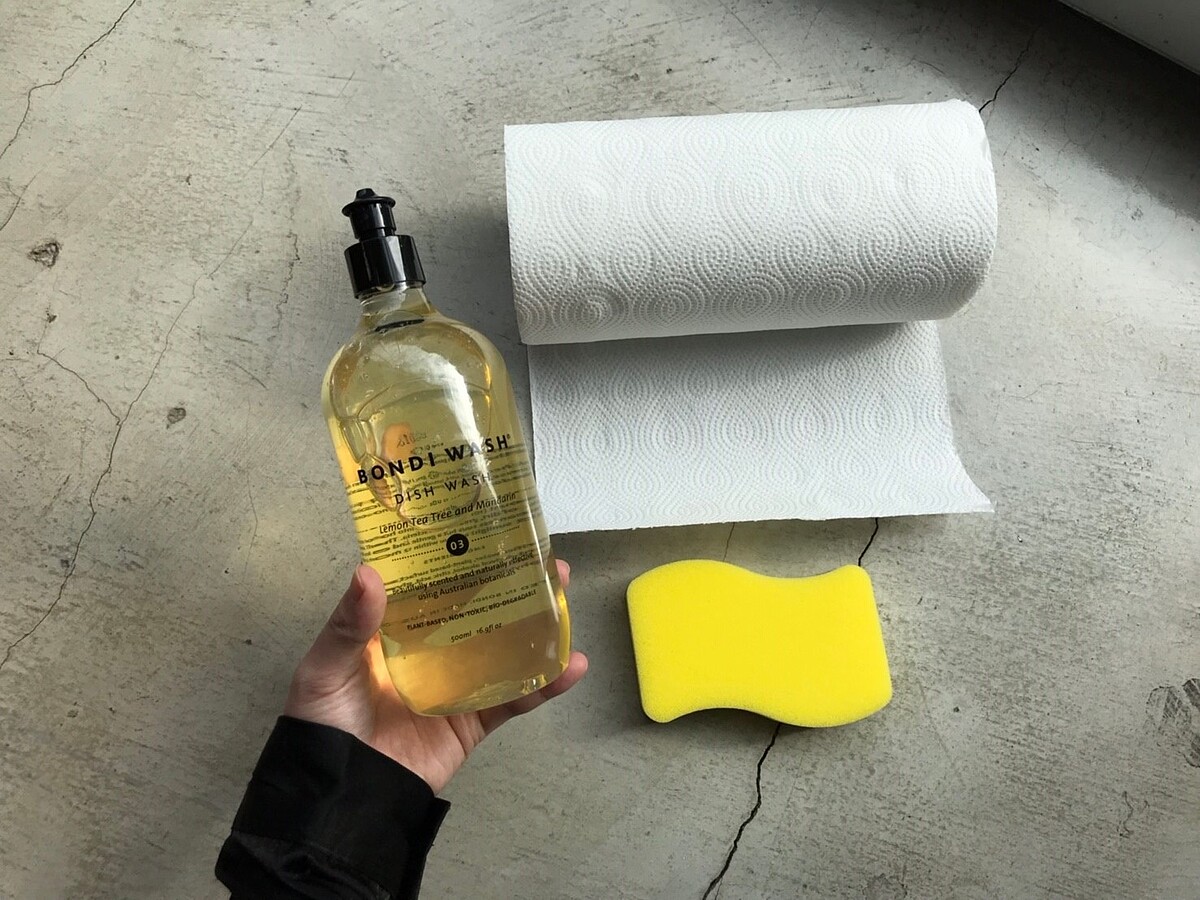 工具:廚房紙巾、碗盤清潔液