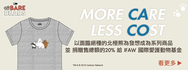 熊熊遇見你參與CACO舉辦的公益計畫【MORE CARE, LESS COST】, 該活動核心宗旨希望喚起「世人對於我們身處環境及瀕臨絕種動物」, 熊熊們生活在人類世界, 當然要用行動支持, 聯名發行多款商品, 而本計畫收入的20%也將捐贈給相關動物保育團體。