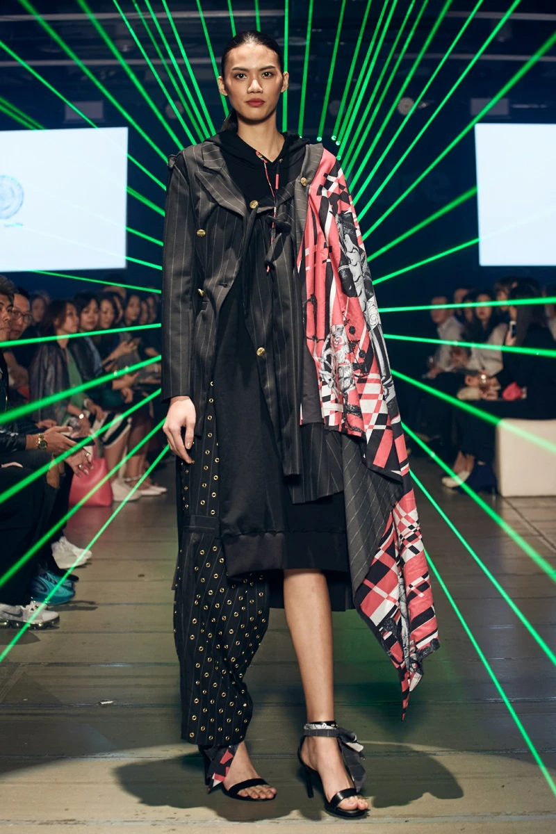 紐約則是風格街頭又前衛的周裕穎,以過去就是未來為概念,從外太空傳說汲取靈感,將神秘符碼化為服裝的印花,大量使用獨特面料與環保材質製成張力十足的服裝。