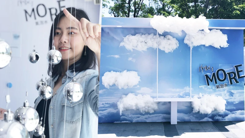 從遠方的就能看到白色搶眼的「多喝水MORE好感研究所」,其實每個角度都超級適合自拍,但特別設計的雲朵夢幻場景,被網美們指定為非拍不可的牆面,畢竟平常要拍藍天白雲得衝海邊,M編相信很多女孩可不想被為了美照被曬黑,來這真的很剛好!