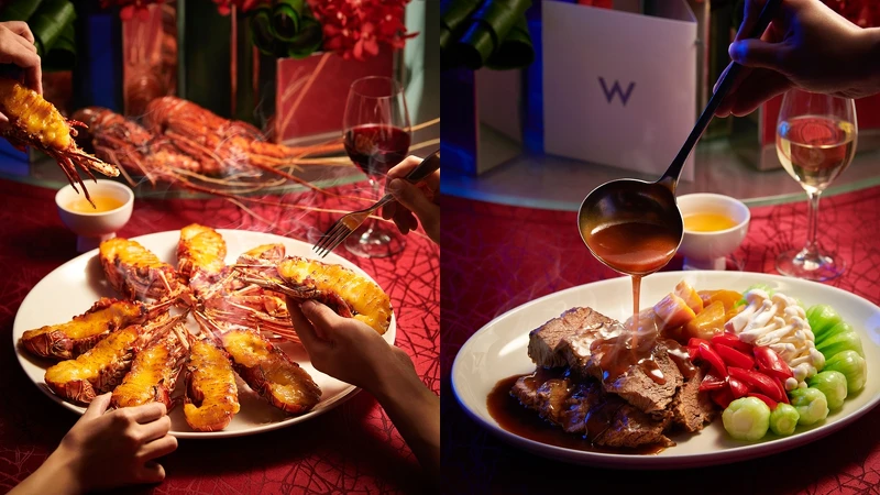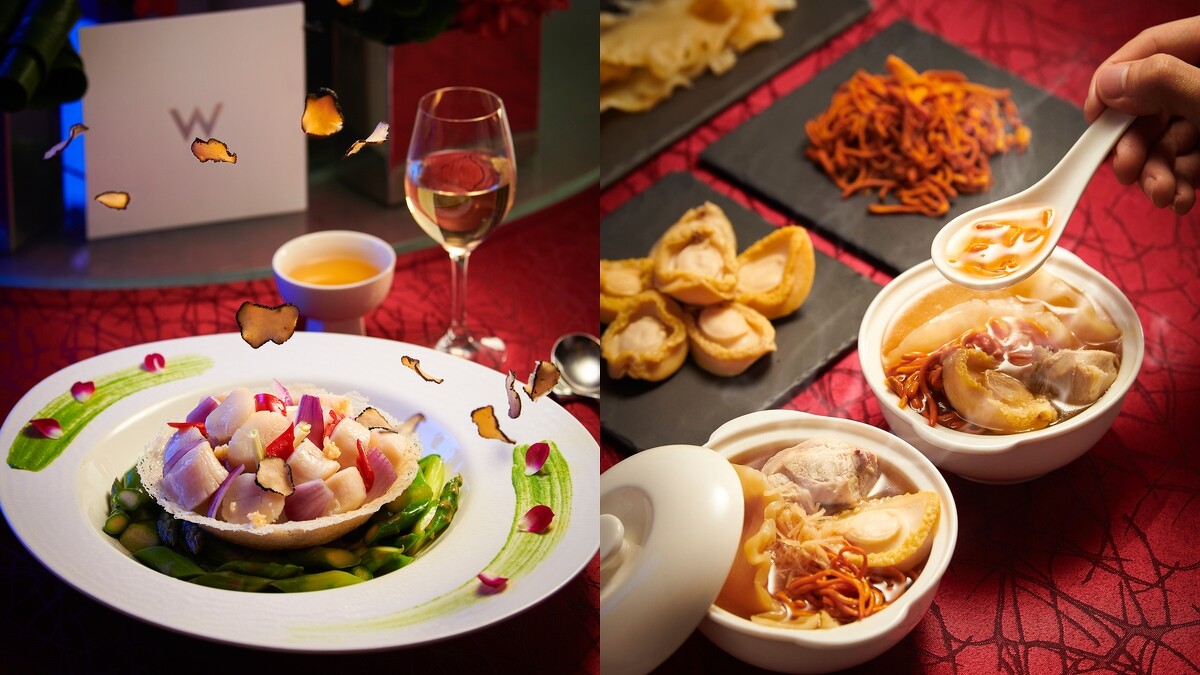 畢竟W Hotel的菜餚真的很美味,擁有多達23年掌廚經驗的許政堂主廚帶來桂花蜜芋頭、川味骰子牛腱、香蒜醬汁黃金六兩、私房椒麻杏鮑菇以及梅汁釀番茄,做工繁瑣耗時的頭盤組合,道道清爽而開胃;另有使用老母雞燉熬長達48小時的黃金雞湯湯底,以及「鮑參翅肚」中的珍貴的「肚」打造而成的頂級黃金湯品「北蟲草鮑魚燉花膠」,宴客最大方得宜;「黑松露蘆筍炒北海道鮮貝」則是使用日本的北海道鮮干貝與法國進口的黑松露,配上主廚特製醬汁,大火快速爆炒,香氣四溢,令賓客回味無窮!