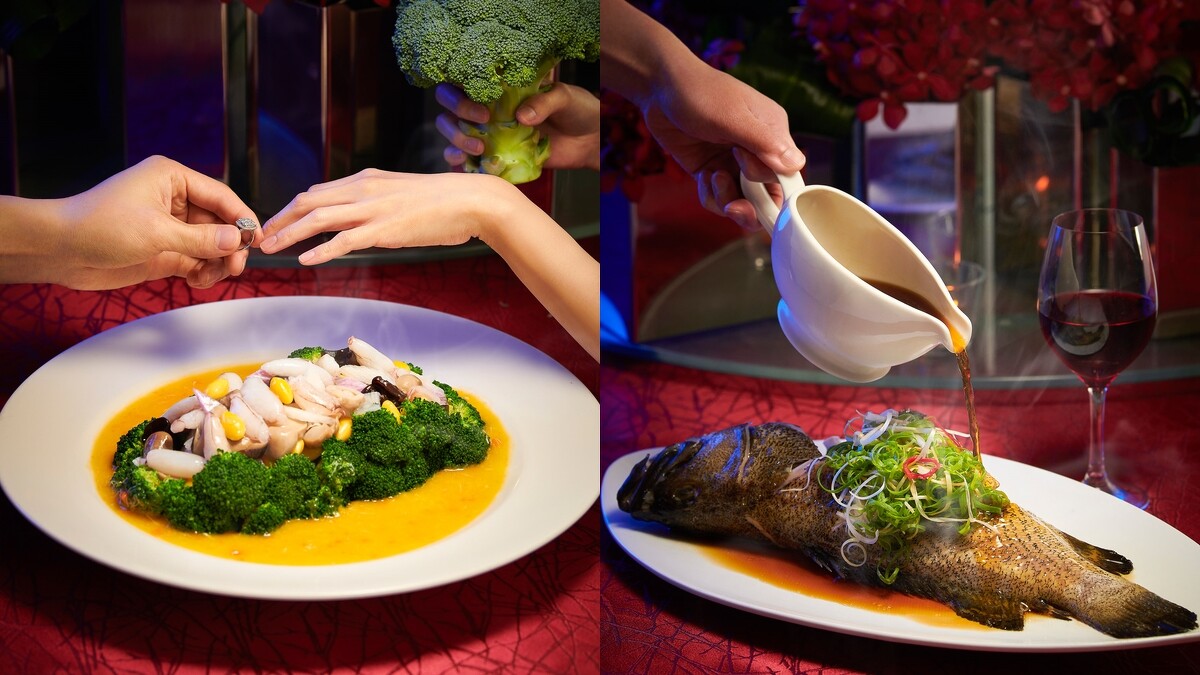 使用台灣在地新鮮龍虎石斑打造「鳳脂鮮露龍虎斑」、多種時蔬搭佐黃金老母雞湯汁的「金湯蟹粉濃湯野菌扒時蔬」以及鮮甜多汁的「芝士沙律焗烤龍蝦」等多道精彩菜色…好了吧…M編現在就想吃…誰要結婚的可以先發帖子給我!