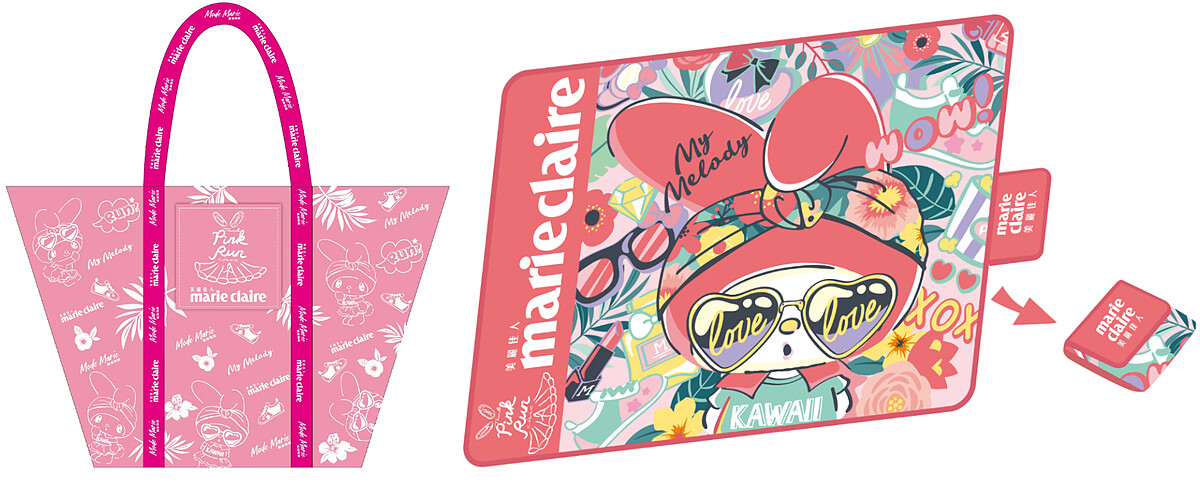 Marie Claire美麗佳人國際中文版雜誌與三麗鷗粉紅教主「美樂蒂」,特別聯名推出賽事限定加價購紀念品,最具實用性的「美麗佳人×曼黛瑪璉×美樂蒂 獨家聯名衣保袋(加價購$300)」、草地野餐必備「美麗佳人×美樂蒂 獨家聯名野餐墊(加價購$590)」,獨家的可愛設計兼顧質感與實用性,讓更重要的是,美麗佳人與三麗鷗與您一起實際支持公益行動愛心,每售出一個賽事加價購獨家紀念品,美麗佳人與三麗鷗,將為您捐出$20元,提供給「財團法人台灣癌症臨床研究發展基金會」為支持乳癌防治實際貢獻心力,為愛齊跑。