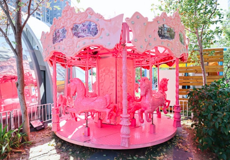 粉紅旋轉木馬除了可以拍美照打卡外還可以實際乘坐,超適合大人小孩一起同樂~