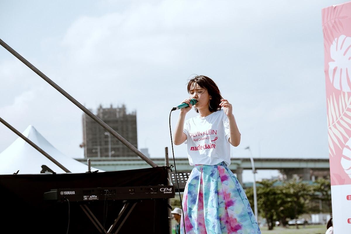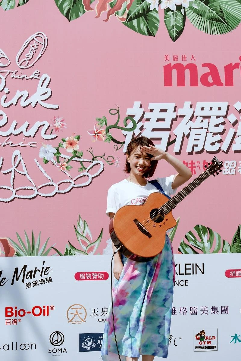 當天一身白T+長裙的嚴正嵐,看起來特別亮麗甜美,她是名創作歌手,是演員,同時也跟在場所以粉紅跑友一樣,有顆善良且懇切的心,希望透過公益活動、藉由自己的影響力,帶給社會更多正向力量。於是她身著簡單裝扮,抱著把吉他,輕輕撥動線絃,唱出一首首令人陶醉的歌曲。