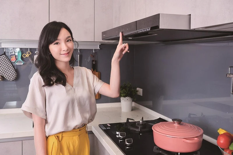 方便順手料理的黃金地段掛件,以及符合人體工學設計的各式收納機能櫃,能大大提升料理效率,旅行收集的餐盤和烹飪工具則透過櫻花廚藝生活館的妥善規劃,達到整齊美觀的收納最高境界!她強調:「華人的做菜方式常有油煙問題,櫻花的渦輪變頻除油煙機可以很快地排除油煙,也可以定時安靜地除去煎魚之後的味道,非常貼心。」