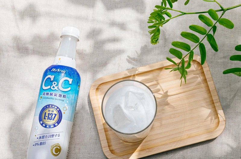 黑松C&C水果風味氣泡飲系列,完美結合碳酸口感與多樣化果汁風味,每瓶添加可滿足一日所需的維他命C,一直以來深受消費者喜愛。今C&C首度突破以往水果風味,添加全新L-137植物乳酸菌,打造台灣人喜愛的酸甜口感。「黑松C&C乳酸菌氣泡飲」以酸甜適中的乳酸風味,搭配綿密暢快的碳酸氣泡,口感清爽香甜,不僅帶給味蕾豐富感受,也能帶來一日好心情,充滿活力。