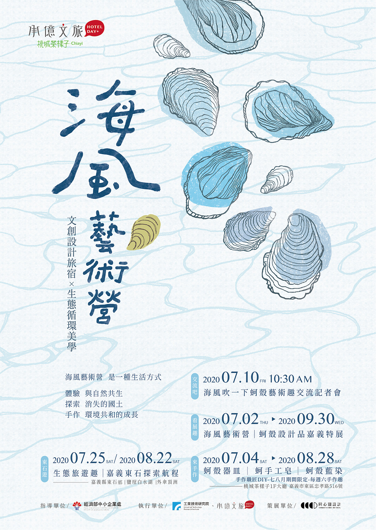 華人最大文創設計旅店集團「承億文旅」帶來全新策展計畫!搭上暑假國旅及嘉義旅遊熱潮,攜手工業技術研究院合作,將嘉義在地豐厚的蚵為軸心,鏈結生態跨域產業,以手作、飲食、旅遊及創意設計品四大面向推出「海風藝術營」主體展,即日起至9月30日於承億文旅桃城茶樣子盛大展出。同時,承億文旅偕同「隨處樂料理廚房」亦推出期間限定的鮮蚵風味料理,並有手作職人於暑假每周六駐館開課,帶給旅人創意新玩法。
