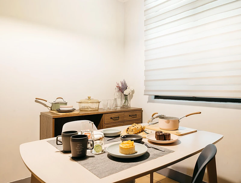 餐廳扮演著一家人溝通情感、撫慰心靈、補充能量的重要使命,可延伸實木餐桌能因應空間與用餐人數調整桌面大小,簡單素雅的外觀設計,無論是在桌面上放置粉嫩色調的鍋具或橡膠木健康料理砧板,都散發著IG上最令人喜愛的歐美質感料理美照風格,讓廚房除了佳餚香氣之外,還同時洋溢著滿滿幸福品味。