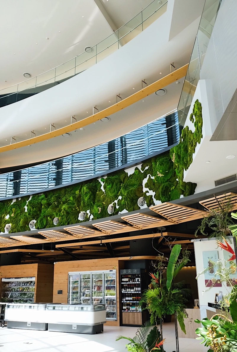 而「春」其實是動名詞,代表著為大直商圈注入嶄新契機,商場內以特有的「苔生牆」象徵台灣的山巒綠意景象,也巧妙將圓山大直一帶融為設計,也能看到島嶼、山林靈感的視覺藝術裝置,相信一走進便能發覺場域內的豐沛能量。