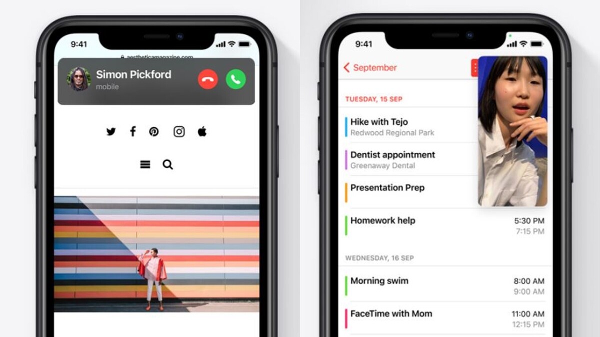 使用手機時,都會因來電被打斷?全新的「精簡來電顯示」在iPhone電話、FaceTime與第三方電話,都只以精簡設計於螢幕上方顯示,不會再佔據整個螢幕。而未來也能用「子母畫面」,能一邊觀看影片、FaceTime,並能一邊使用其他APP。