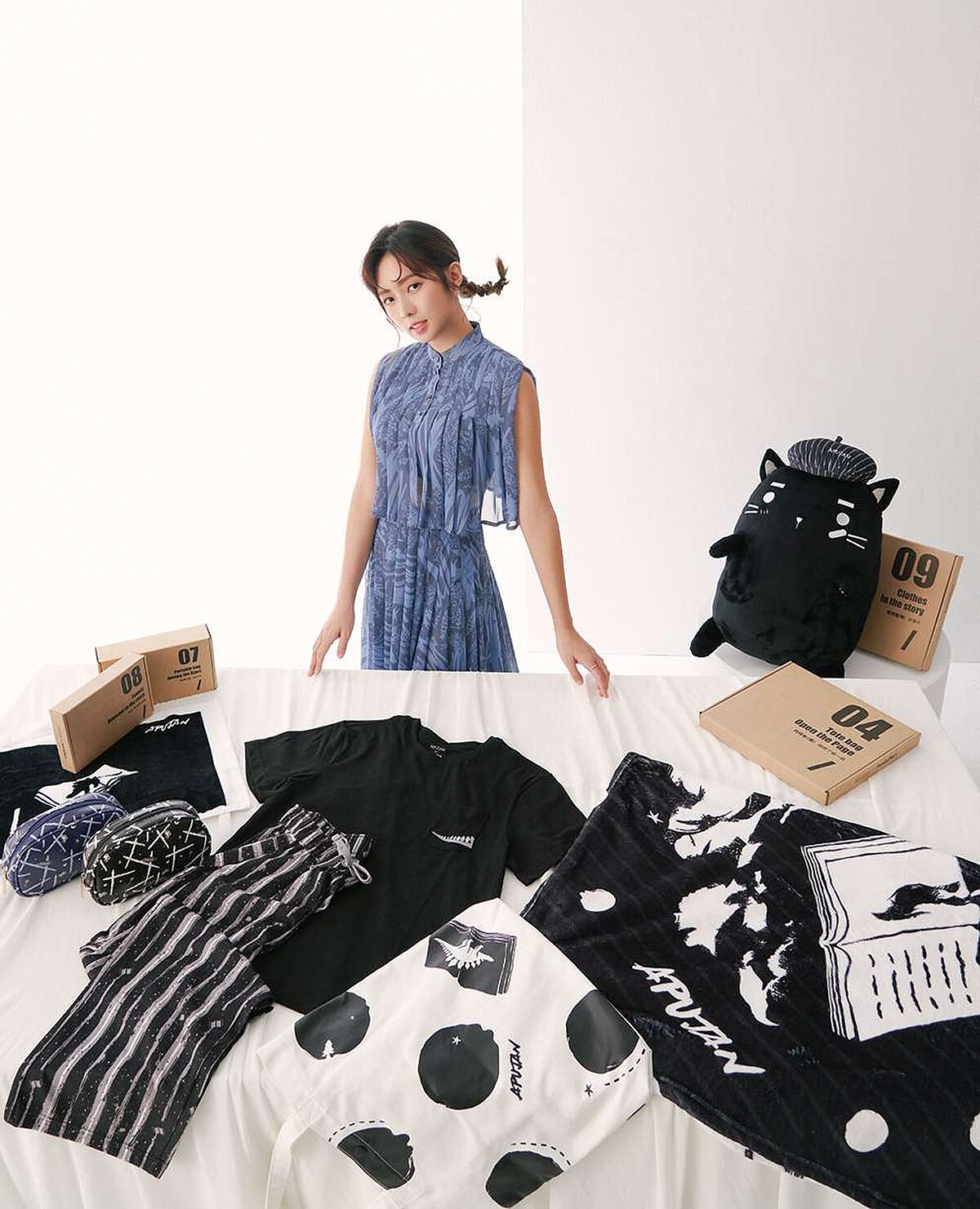 至於搶先欣賞過「APUJAN x FamilyMart 翻開 一頁圖畫書」聯名集點商品的簡廷芮,在第一次看到全系列就已經被徹底圈粉,她說:「除了符合日常實用性之外,時髦又可愛的圖案設計、放在家中角落也能讓空間變得精緻有品味,如果問我最喜歡哪一款?只能說沒有最愛只有都愛。」,不過如果她也推薦了女生務必要搶先收的品項,絕對不能錯過「黑貓 MOON」造型抱枕、「星星之中」盥洗包以及「翻開了那一頁」托特包。