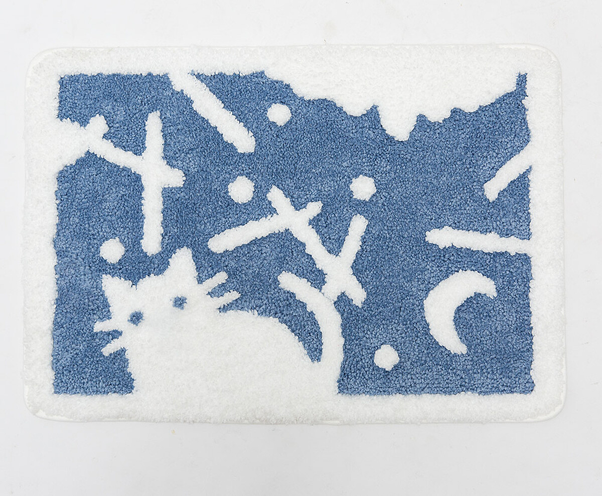 以「攤開毯子像是翻開一頁圖畫書」為發想,運用貓咪剪影搭配緹花紋路與圓點圖案,放在房間內或是浴室門口替生活增添趣味感,吸水度同樣跟設計感一樣優秀。