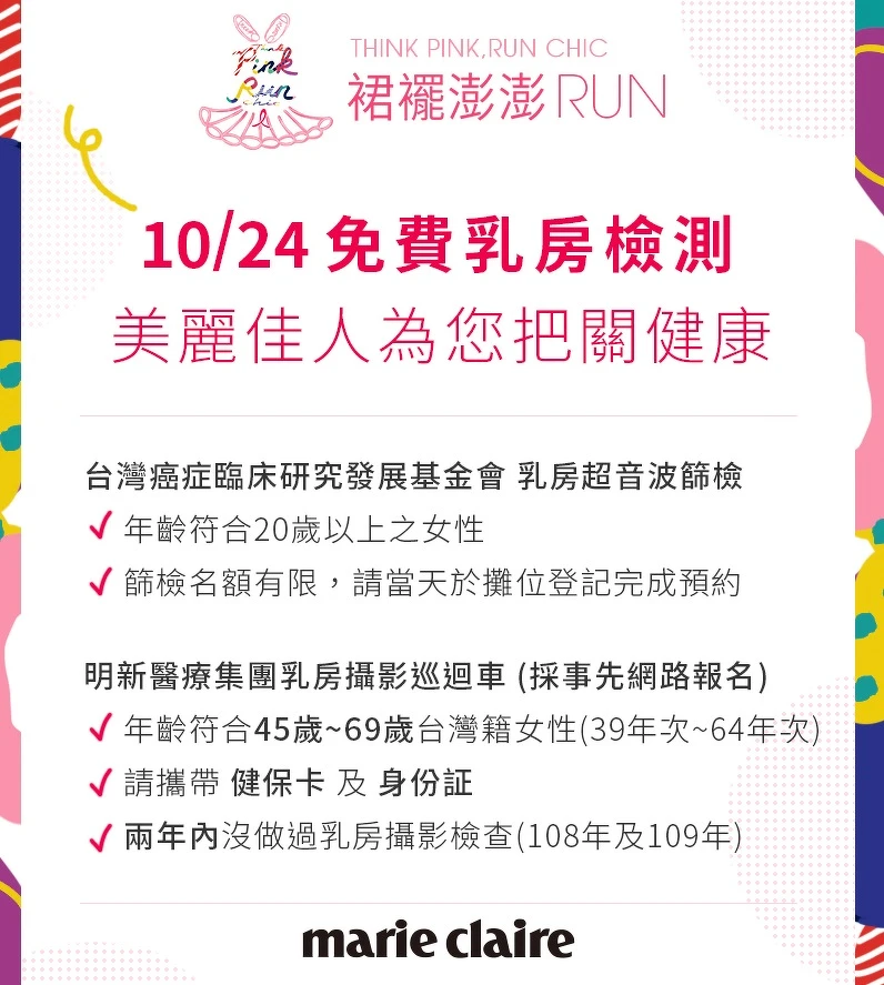 別害羞!別緊張!你的健康讓美麗佳人為妳把關!活動現場設有台灣癌症臨床研究發展基金會-乳房超音波篩檢,怕痛的水水~~這邊請~~當天請於攤位完成預約。另外也邀請到明新醫療集團的乳房攝影巡迴車,為45-69歲的小澎裙們做免費篩檢喔!乳房攝影採事先報名: https://forms.gle/agdm2YgTSsGfBcbH9