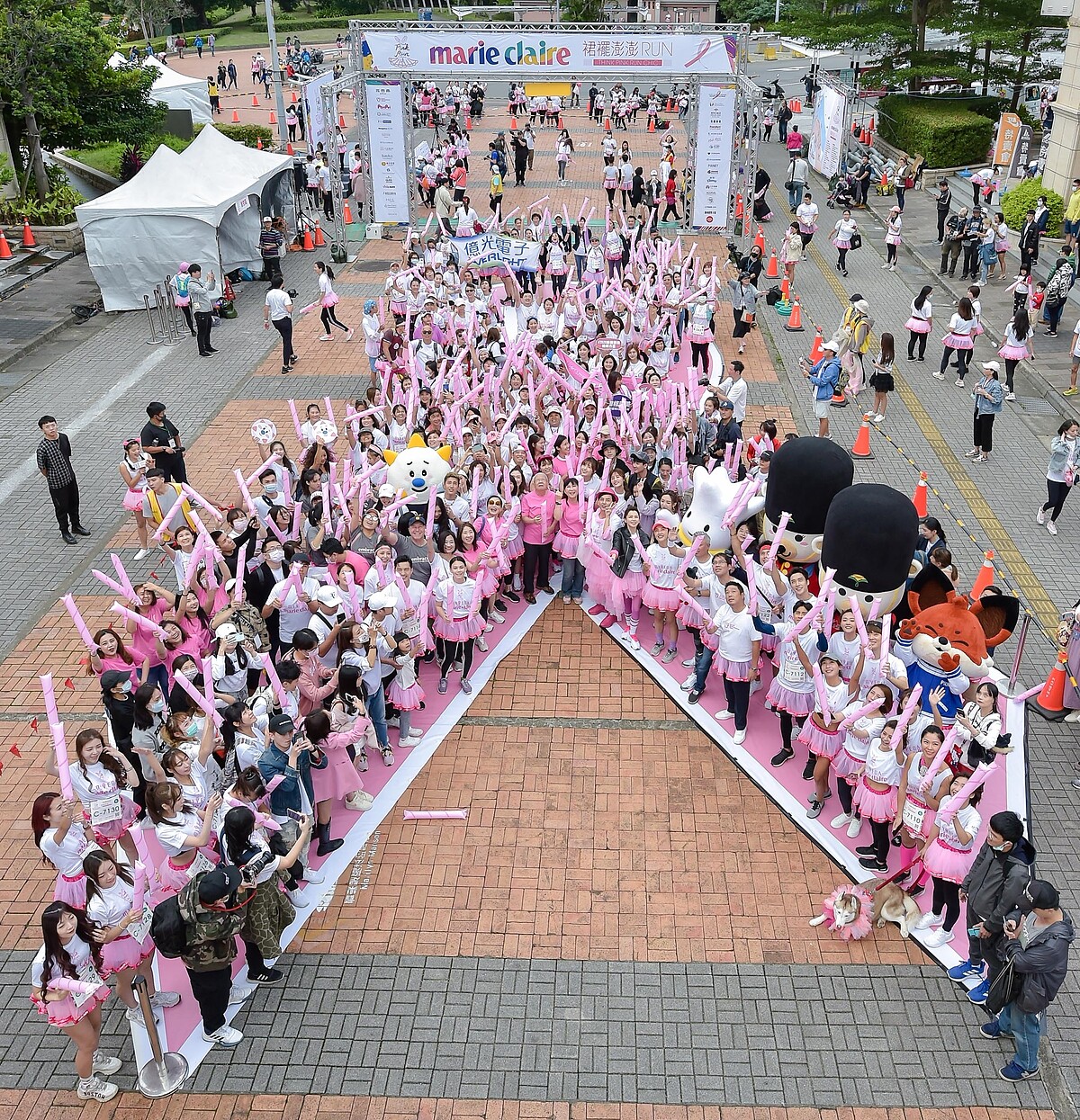 裙襬澎澎 RUN為響應每年10月乳癌防治月的重要活動,今年更增加壯觀合影喬段,邀請千名跑友與藝人們一同站出粉紅絲帶位置,象徵「關懷乳癌患者及防治乳癌」的意義,代表著女性特有的溫柔,堅強的力量,主辦單位利用空拍機拍出這壯觀感人的一刻,期望女性們更加重視身體健康,為成功對抗乳癌的抗癌戰士們致上溫暖的敬意。