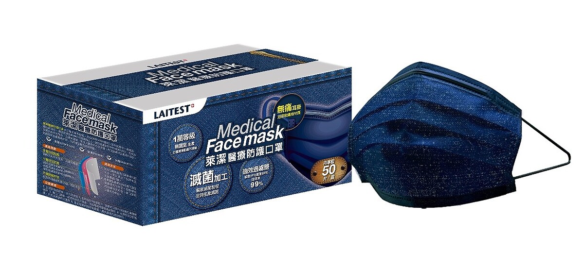 「丹寧牛仔金屬藍」和「牛仔玫瑰粉」同樣是外耳繩設計,耳繩改成由外向內拉,提升了醫療口罩的舒適度,也降低了耳朵的壓力。