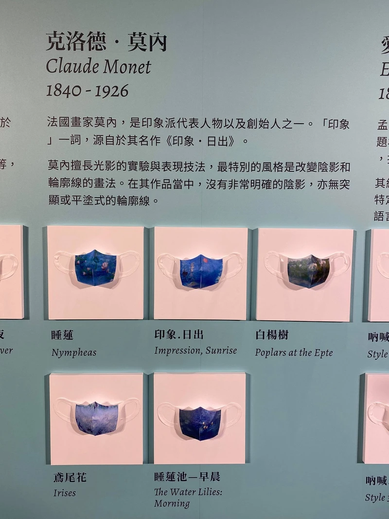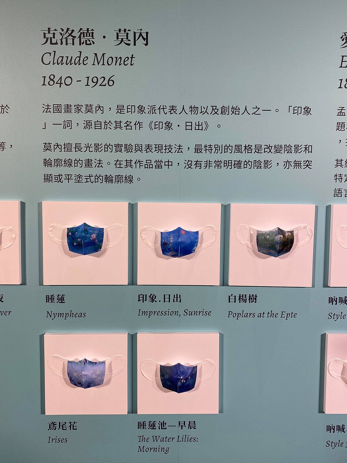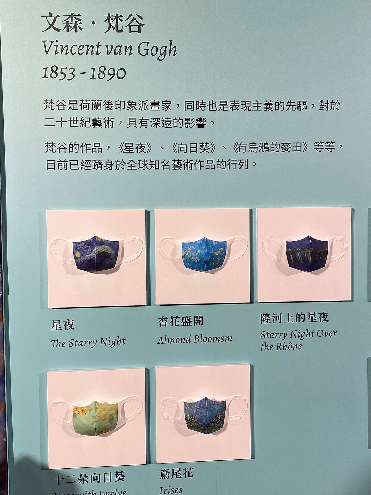 為了讓大師們的作品完美印製在口罩上,是採用最新數位印刷技術,裁切下來的每一片口罩都有著精美的構圖,像是梵谷的《十二朵向日葵》、《星夜》,孟克的《吶喊》,以及莫內的《睡蓮》等,共有28款絕美名畫系列。