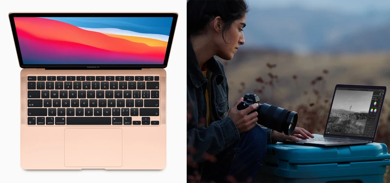 這次的M1晶片讓Mac提升到更高的層次,8核心CPU歷來最快速,速度提升最快可達3.5倍,繪圖上處理速度提升最快可達5倍,創作者首度可以剪輯並流暢播放多道全畫質 4K 影片串流,電池續航力最長達18小時,也讓新一代macOS Big Sur系統更加敏捷,在安全與隱私保護功能也更加提升。