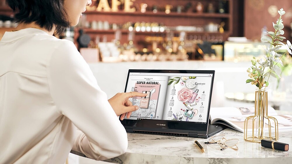 跟上手機螢幕趨勢,ZenBook Flip S有極窄邊框觸控螢幕設計,螢幕占比達92%,更加接近「全螢幕」視覺感受。在使用起來也能因為廣闊的視野面積,獲得更多資訊及減少頁面捲動次數。