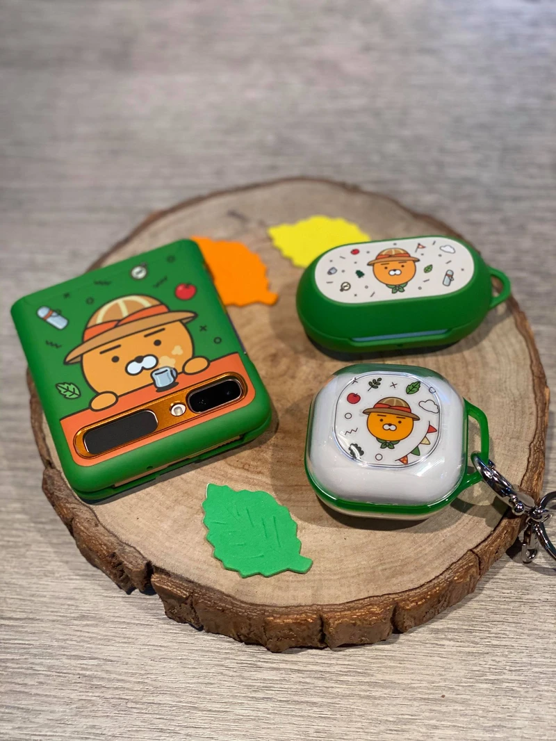 因為折疊外型受到女孩們喜愛的Galaxy Z Flip 5G,這次可以穿上綠色的Kakao智慧背蓋,看到穿戴露營風的Ryan圖案,還印上「CAMPING CLUB」字樣,拿在手上療癒十足。