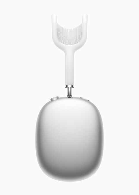AirPods Max 覆蓋在頭帶上的透氣頂部網面,可分散重量,並降低頭部壓力。不鏽鋼頭帶框架帶來了強度、彈性與舒適度,以適應各種頭形大小,並有五款美麗的顏色,包括太空灰色、銀色、天藍色、綠色與粉紅色。
