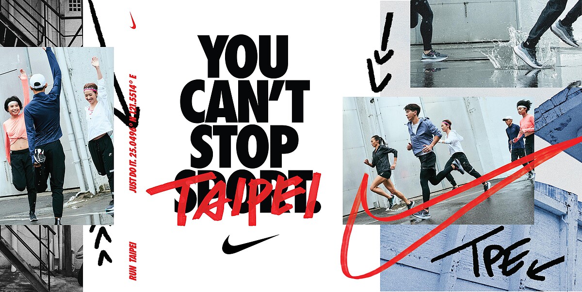 - 動辦法:凡是NIKE會員的跑者,即可免費體驗「跑者宣言客製服務」。跑者可寫下自己的宣言,即能獲得限量專屬的「YOU CAN’T STOP TAIPEI」跑者宣言毛巾。