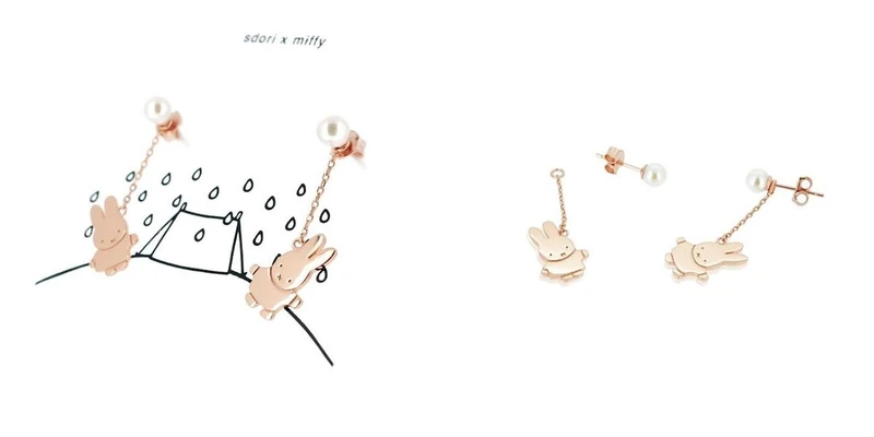 是鐵粉必收!以插畫中最具代表性的米飛兔與氣球為主題,使用米飛兔6月的誕生石:珍珠做為材質祝賀65歲生日快樂,簡約設計也象徵著主人翁的純真。珍珠耳環與垂墜更可以分開配戴,一副便能應付多種場合需求。