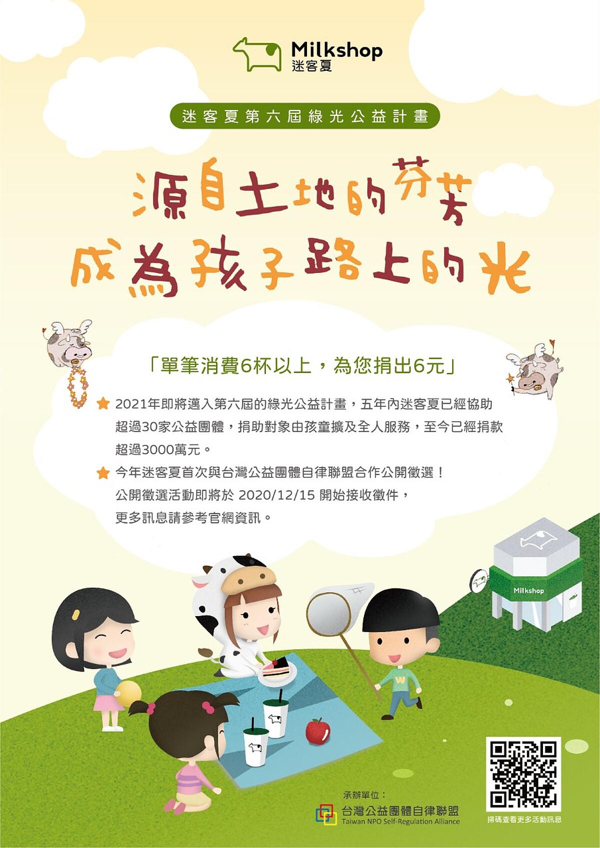 第6年的「綠光公益計畫」,《迷客夏》也首次與台灣公益團體自律聯盟合作公開徵選,將於2020/12/15 至2020/12/31 開始接收徵件,詳細活動辦法各位可到迷客夏官網查詢。