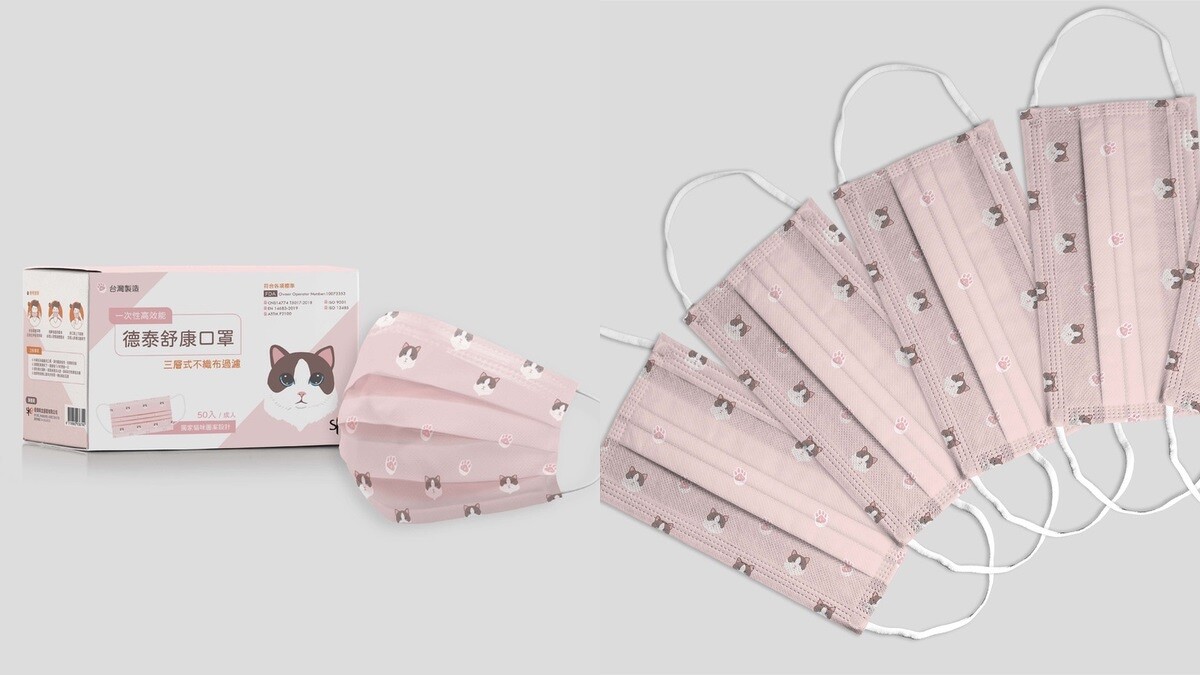 另外還有貓奴必須要收的「粉萌貓掌肉球圖騰」,以可愛的貓臉印花與萌度滿點的貓掌肉球圖案做全版設計,粉嫩的柔和底色結合喵喵圖案,萌度破表,還有「兒童版」與「成人版」,售價 NT$400元 / 50入。