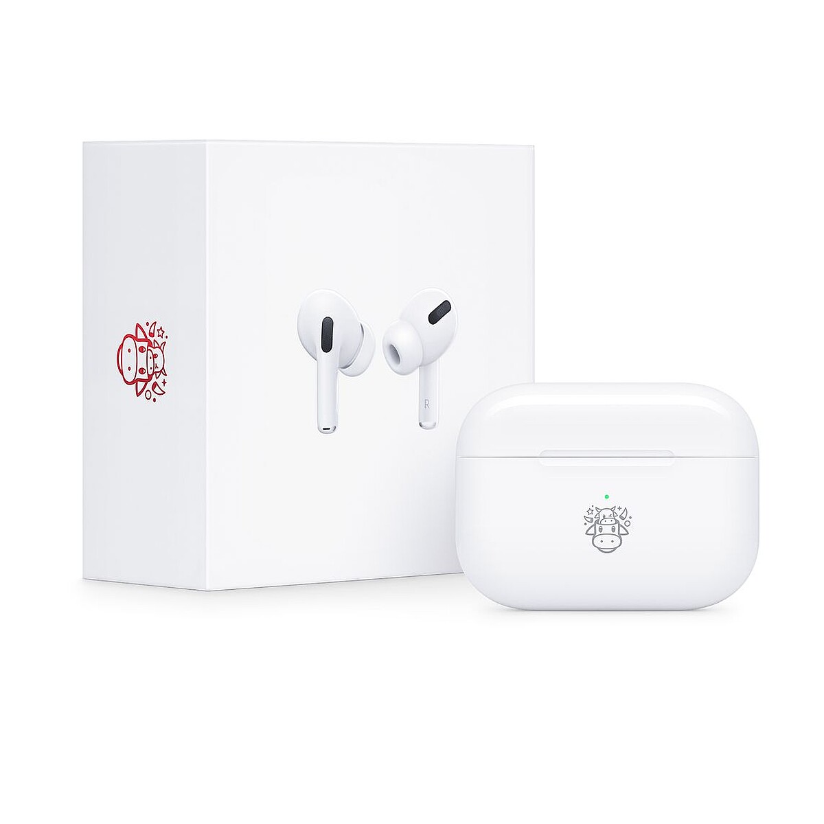 是的,迎接新年,Apple這回特別推出AirPods Pro 牛年限量款,將熟悉的表情符號經獨家設計,打造牛年專屬的樣貌,就連外包裝盒也加上紅色牛年印記。