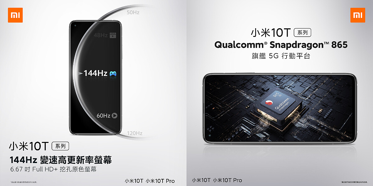 小米10T Pro有宇宙黑、極光藍兩色,售價15999元,預計於1月中旬開放預購;小米10T則有宇宙黑、月光銀,售價13999元,已開賣。