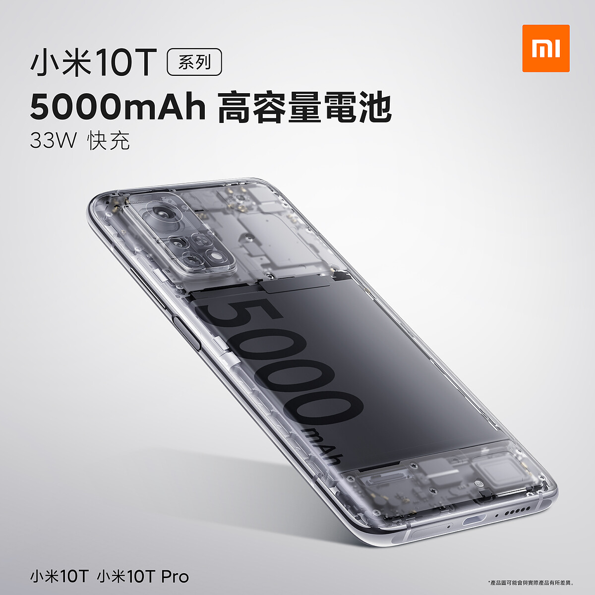 小米10T Pro、小米10T皆有5000mAh電量,並能有33W有線快速充電,在60分鐘內達到100%充電,即便是高度手機使用族,也絲毫不需擔心電量耗盡。